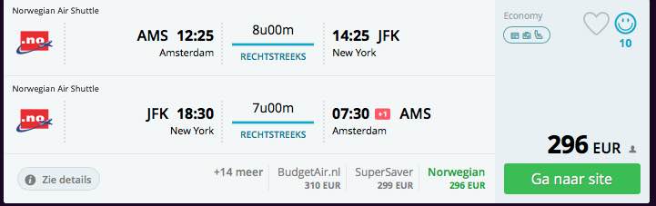Wil je naar New York of gewoon naar de States voor weinig? Dan hebben wij de beste ticket deal die momenteel verkrijgbaar is. Met Norwegian of/en WOW airlines vanaf € 296,–. Het mooie van dit ticket is Dit is echt alleen voor budget reizigers. Norwegian en WOW geven namelijk geen maaltijden aan boord. Ook kan je bagage niet voor deze prijs inchecken. Dit kost extra, ongeveer € 140.– voor een retour. Kan je hiermee wel uit de voeten dan heb je natuurlijk een super cheap vliegticket. Wil je echter meer dan moet je daar voor betalen maar is natuurlijk ook mogelijk.